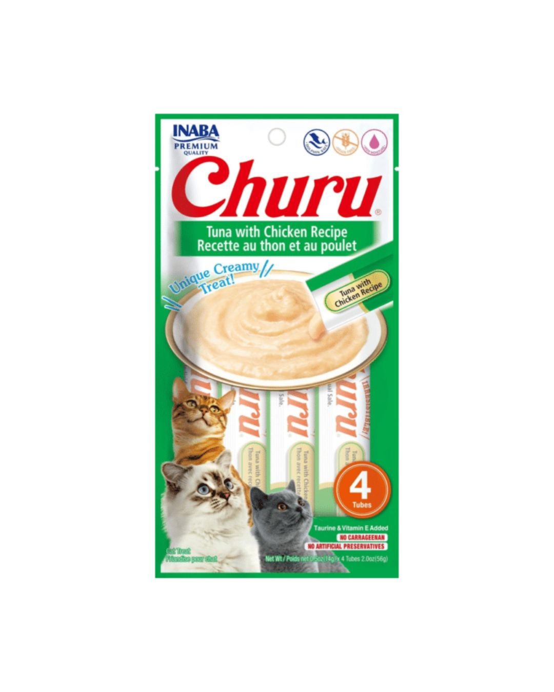 Alimento para gato, Gato, Ofertas, Snack para gatoCHURU CAT TUNA/CHICKEN (ATUN/POLLO) 14 GR X 4 TUBOS- VERDE